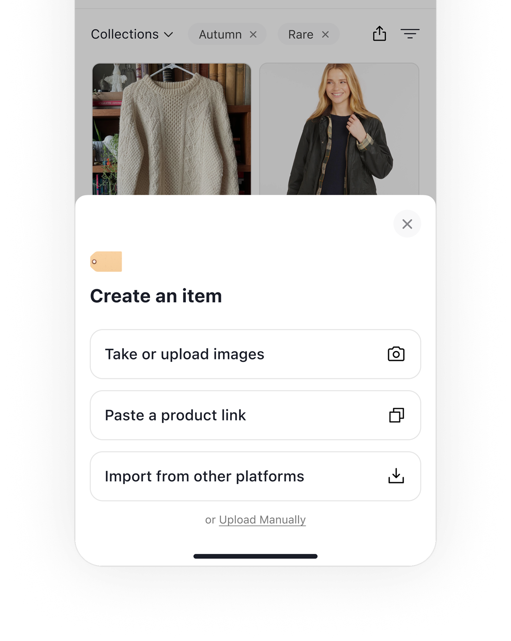 List items right on Crop, or add them from eBay, Shopify, IG, affiliates, etc.